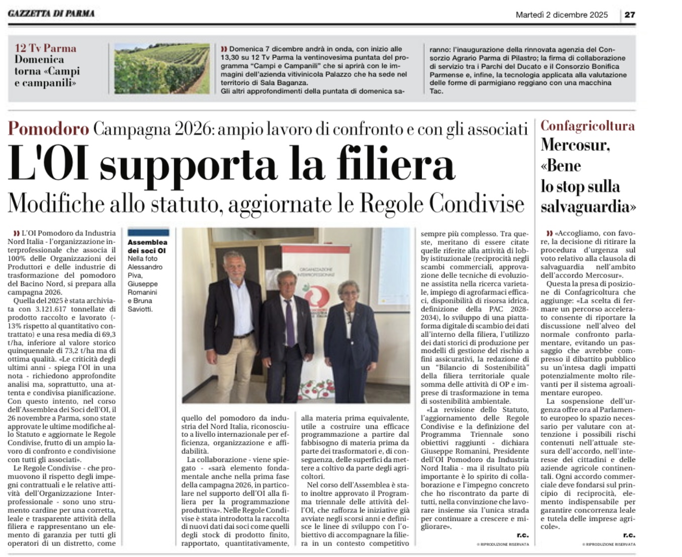 The OI Pomodoro Nord Italia is preparing to support the supply chain for the 2026 campaign